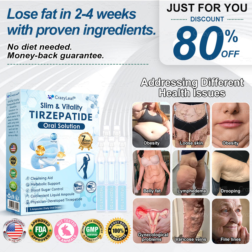 The journey to findย alternative treatmentsย has been incredibly challenging. When I stumbled upon CrazyLeafยฎ Slim and Vitality Tirzepatide Oral Solution, I wasn't sure if it would truly help, but after reading the reviews, I decided to give it a shot. And afterย 5 weeks of use, the results are truly amazing!ย Those who claim these things don't work are simply addressing problems that don't even exist!ย These products are 100% effective. It's theย first product that's made my legs feel normal againโsaying goodbye to theย elephant legs sensationย feelsย incredible!"-Olivia Johnson 37 years old ,Seattle. USA